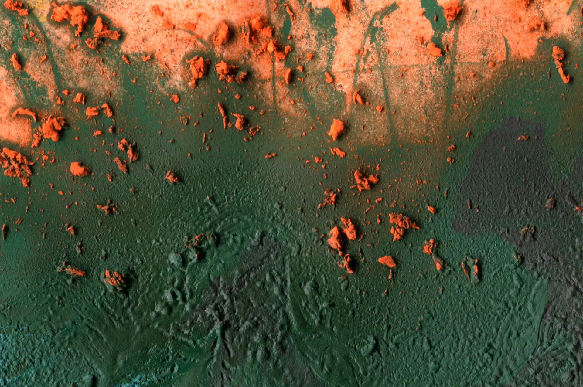 Mixed media on paper (acrylic paint, PVA glue, and oil)