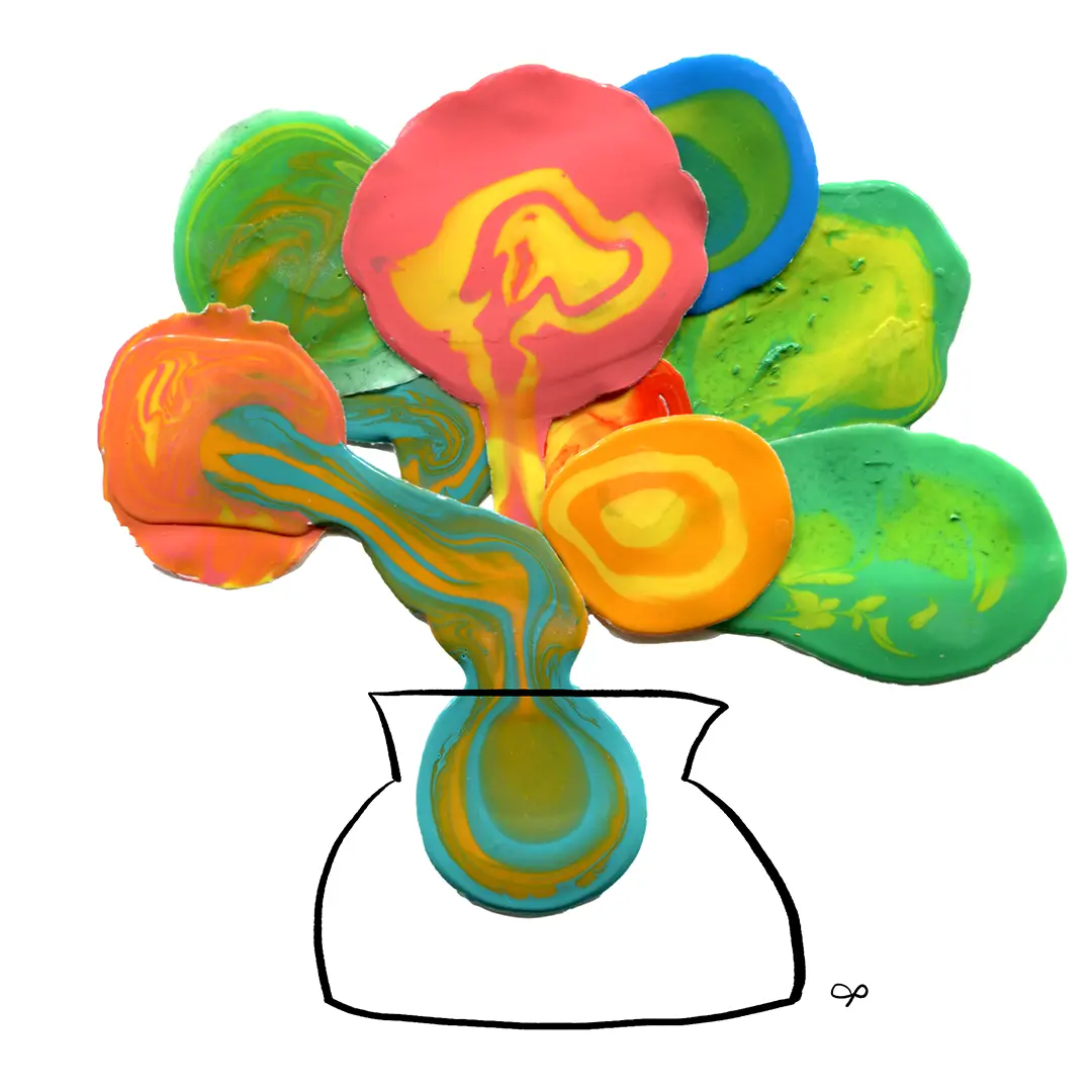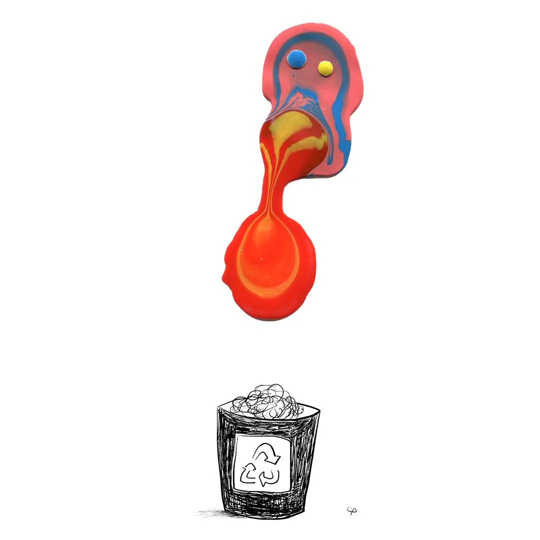 As part of my experiment for the project “Power of Nature”, I have tried mixing Acrylic paints and PVA glue. However, it did not go as I expected, and the colored pieces were left on my shelves for a long time; so I have reused the color pieces for the collage to express the joy of our daily life.